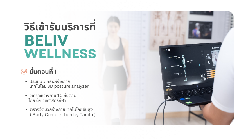หนึ่งในจุดเด่นของ Beliv Wellness คือ AI Posture Analyzer เทคโนโลยีล้ำสมัยที่ช่วยวิเคราะห์โครงสร้างร่างกายรายบุคคลอย่างแม่นยำ AI จะประเมินลักษณะการยืน เดิน และท่าทางต่างๆ ของแต่ละบุคคล พร้อมระบุจุดที่ต้องได้รับการปรับแก้หรือเสริมสร้างเพื่อให้ร่างกายทำงานได้อย่างมีประสิทธิภาพสูงสุด